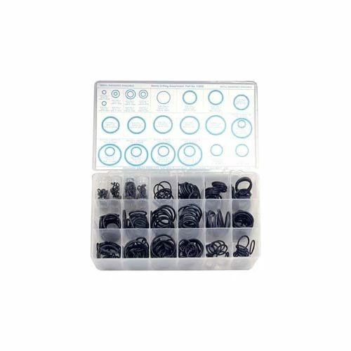 Constructed of BUNA-N 70 durometer rubber compound rings for long lasting durability. Ring create tight seal for fluid or gas connections. Large assortment saves time and money and stores in plastic compartment box. Contains: 15 – 2mm x 3mm; 15 – 2mm x 4mm; 15 – 2mm x 5mm; 15 – 2mm x 6mm; 15 – 2mm x 8mm; 15 – 2mm x 10mm; 15 – 2mm x 12mm; 10 – 2mm x 14mm; 10 – 2mm x 20mm; 15 – 2.5mm x 10mm; 15 – 2.5mm x 12mm; 15 – 2.5mm x 14mm; 15 – 2.5mm x 15mm; 15 – 2.5mm x 16mm; 10 – 2.5mm x 17mm; 10 – 2.5mm x 19mm; 15 – 3mm x 19mm; 15 – 3mm x 20mm; 15 – 3mm x 22mm; 15 – 3mm x 24mm; 10 – 3mm x 25mm; 10 – 3mm x 27mm; 10 – 3mm x 28mm; 10 – 3mm x 30mm; 10 – 3mm x 32mm; 5 – 3mm x 33mm; 5 – 3mm x 35mm; 5 – 3mm x 36mm; and 5 – 3mm x 38mm. Package quantity is 350.